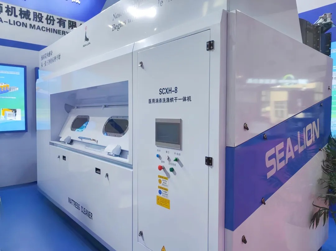 在本次展會(huì)上,海獅機(jī)械成為焦點(diǎn)。本公司擁有獨(dú)家知識(shí)產(chǎn)權(quán)的海獅醫(yī)用床墊一體機(jī)憑借獨(dú)特設(shè)計(jì)和卓越性能,贏得了參會(huì)者的高度贊譽(yù)。這款產(chǎn)品在醫(yī)用領(lǐng)域的獨(dú)特之處在于,它能夠解決醫(yī)院病房床墊難以批量清洗消殺的世紀(jì)難題,解決了醫(yī)用領(lǐng)域消殺全覆蓋的“痛點(diǎn)和盲點(diǎn)”,有效預(yù)防了醫(yī)院交叉感染風(fēng)險(xiǎn)。